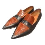セリーヌ CELINE ローファー ポインテッドトゥ レザー 37.5 黒 ブラック 茶 ブラウン レディース
