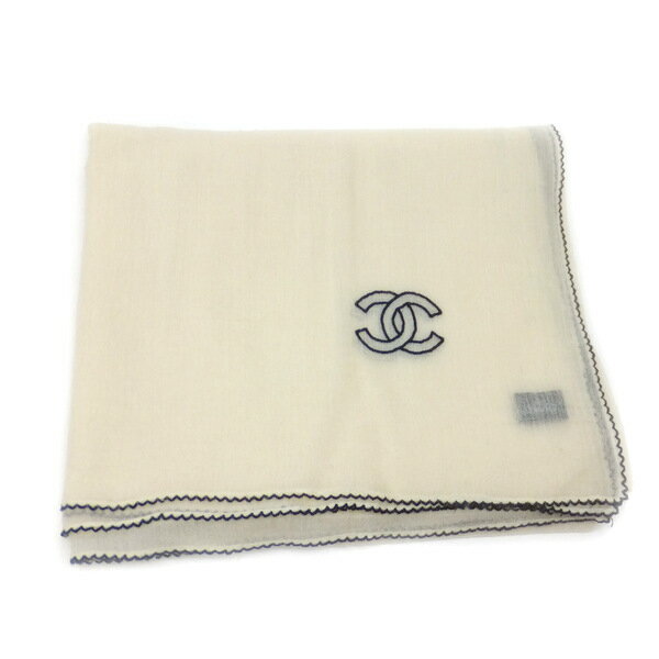 【★CHANEL★】シャネル 『カシミヤ・大判ストール』 アイボリー×ブラック/カシミヤ100%/135cm×220cm/CC/ココマーク/COCO/ショール/ロングストール/マフラー 【★セレブ愛用★】 39080k1215 @【中古】