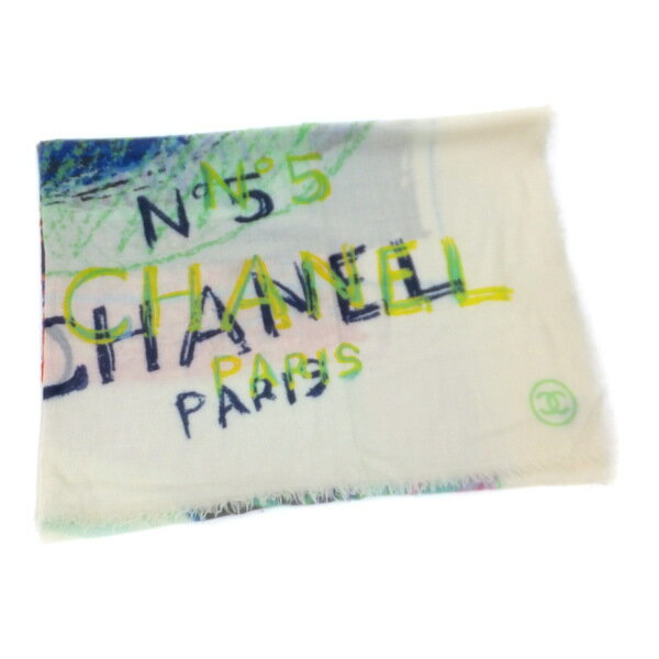 【★CHANEL★】シャネル 『カシミヤ・大判ストール』 No5×アイボリー×マルチカラー/カシミヤ100%/125cm×180cm/CC/ココマーク/COCO/ショール/ロングストール/マフラー 【★セレブ愛用★】 39081k1215 @【中古】