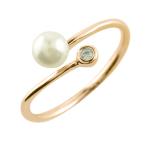 k18 リング レディース パール ダイヤモンド フォークリング 淡水パール 指輪 ピンクゴールドk18 ピンキーリング 18k 18金 華奢 4月誕生石 かわいい