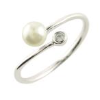 k18 リング レディース パール ダイヤモンド フォークリング 淡水パール 指輪 ホワイトゴールドk18 ピンキーリング 18k 18金 華奢 4月誕生石 かわいい