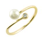 k18 リング レディース パール ダイヤモンド フォークリング 淡水パール 指輪 イエローゴールドk18 ピンキーリング 18k 18金 華奢 4月誕生石 かわいい