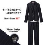 【家庭洗濯OKの多機能スーツ】スーツ レディース パンツスーツ セットアップ ジャケット S-24721 パンツ S-50501 ピンドットストライプ セロリー