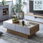 センターテーブル ローボード 幅120 テーブル おしゃれ コーヒーテーブル 引出し収納 ガラス天板 強化ガラス 木目柄 石目柄 フルオープンレール 引出し