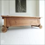 チーク無垢材 ヴィンテージリビングテーブルariot トロリーテーブル センターテーブル 什器 アンティーク 再生家具 W188cm