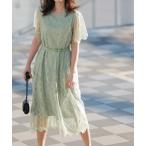 ワンピース 異素材ベルトレースワンピ