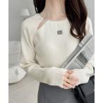 ニット セーター 「mily bilet」程よい甘さと女性らしさを演出。テープリボン使い胸刺繍ニットプルオーバー レディース