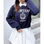 ニット セーター シャツ襟付エンブレムロゴニット レディース