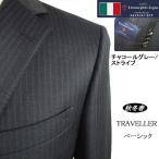 【A体】【AB体】【BB体】【秋冬春】【Ermenegildo Zegna ゼニア〜TRAVELLER】ベーシックタイプ 2ボタンシングルスーツ/チャコールグレーストライプ