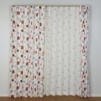 セットカーテン レースカーテン付き ネコ柄 ハート 旅行 ねこ