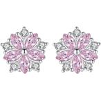 【並行輸入品】クリスタルハートスタッドイヤリング 女の子用 シルバーメッキ 個性的 フラワージルコン 低刺激性ジュエリー 女性への母の日の誕生日プレゼ