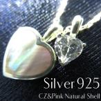 シルバー製 925 ペンダント ショートネックレス ハート キュービックジルコニア CZ ピンク 蝶貝 レディース アクセサリー 2次会 結婚式 パーティー プレゼ