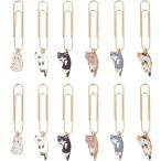12個6色 ペーパークリップ ゼムクリップ エナメル猫付き ページクリップ ブックマーク 栞 猫のペンダント付き 装飾 オフィス(猫)
