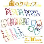 歯 クリップ30g(30 〜40個)セット 歯牙 モチーフ しおり ゼムクリップ 可愛い アソート カラフル ケース入 大容量 歯医者 歯科 キバ