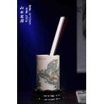 天然マンモス牙美しい手作り彫刻 山水筆筒 置物