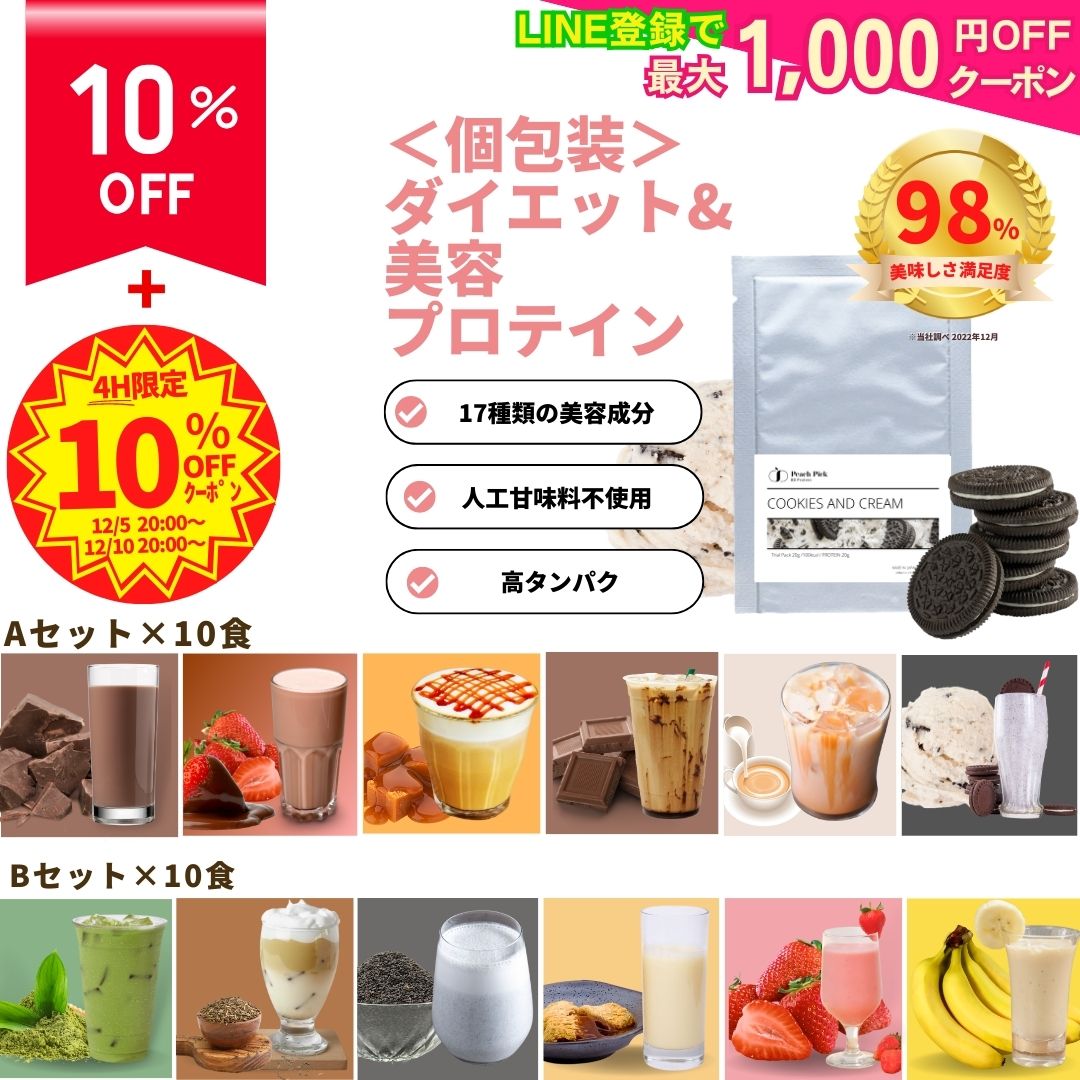 【10%OFF!4,860円→4,374円に!】 美容 プロテイン 個包装 20g 10食セット 飲み切り ダイエット 女性用 お試し 無添加 人工甘味料不使用 ソイ ホエイ カゼイン PeachPick トライアル 甘くない