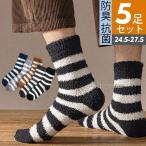 靴下 メンズ ソックス クルーソックス 5足セット ルームウェア ストライプ柄 ハイソックス カジュアル 秋冬 もこもこ 保温 防寒 暖かい 部屋着