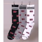 靴下 「3足セット」 ソリッドカラー バック ロゴ リブ クルー ソックス レディース
