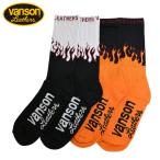 バンソン VANSON NVSC-2401 ファイアーパターン クルーソックス 2足セット フリーサイズ 25 26 27 FIRE 靴下 クルー丈 抗菌防臭 メンズ