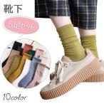 靴下 5足セット レディース ソックス くしゅくしゅ クルー丈 クルーソックス くつ下 無地 蒸れない 通気性 カジュアル シンプル 通勤 通学 爆買