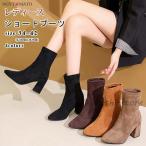 ソックスブーツ スエード調 ブーツ ショート丈 レディース ショートブーツ 太めヒール ポインテッドトゥ 合成皮 履きやすい 歩きやすい おしゃれ 大人 黒 韓国風
