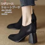ソックスブーツ レディース ブーツ ショート丈 ショートブーツ 太めヒール スクエアトゥ 合成皮 ストレッチ 履きやすい 歩きやすい おしゃれ 大人 黒 韓国風