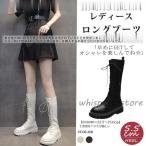 レースアップブーツ ロング レディース 厚底 ラウンドトゥ トラックソール ロングブーツ ストレッチ 編み上げ おしゃれ 美脚 履きやすい 歩きやすい 黒 白