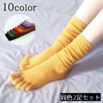 五本指ソックス ソックス 靴下 2足セット レディース 女性 くつ下 5本指 リブ ミドル丈 無地 シンプル ルーズ カジュアル カラバリ豊富