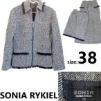 ソニアリキエル SONIA★ひざ丈&ロング丈スカート /ジャケット /上下セットアップ スーツ 3点セット【38/レディースM/黒白】◆T◎12-05