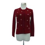 ソニアリキエル SONIA RYKIEL ツイード ノーカラージャケット 18121116-5 七分袖 36 赤 ネイビー