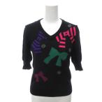 ソニア ソニアリキエル SONIA SONIA RYKIEL ニット セーター ギャザースリーブ Vネック 七分袖 リボン柄 38 黒 ブラック /YJ ■GY61