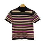 ソニアリキエル ニット 半袖 ハイネック ボーダー トップス レディース 38サイズ ブラック×ピンク系 Sonia Rykiel