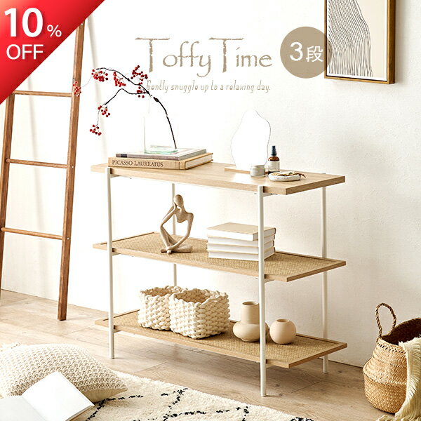 ★10%OFF★12/4 20時~ 韓国インテリアシリーズ【Toffy Time】トッフィタイムオープンラック3段 ( ナチュラル インテリア カフェ風 かごめ編み ラタン調 オープンラック 収納 ベッドサイドテーブル ソファサイド ラタン 棚 おしゃれ )