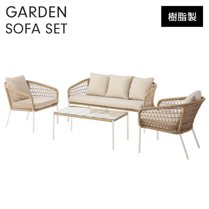 【楽天スーパーSALE10%OFF】ガーデンソファ 4点セット ソファ チェア テーブル セット ラタン調 樹脂製 おしゃれ ガーデンセット ガーデンファニチャー テーブル イス ベンチ 家具 おしゃれ テラス ガーデン リゾート アジアンテイスト カフェ シンプル ホ