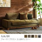 ソファー 2人掛け folk/BR ブラウン 北欧 ヴィンテージ ファブリック フェザー カバーリング コーデュロイ クリンプ ブークレ 【開梱・設置付き】