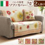 ソファーカバー 2人掛け 洗える 花柄 かわいい イタリア製 ジャガード織 二人掛け ウォッシャブル マーガレット マルチカバー ソファカバー