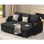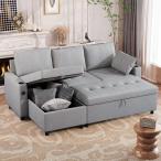 【並行輸入品】Esright 84インチ スリーパーソファベッド、L字型セクショナルコンバーチブルプルアウトソファ リビングルーム用収納長椅子付