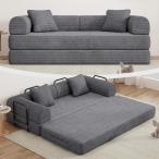 【並行輸入品】78インチ コンバーチブルソファベッド、モジュラー折りたたみコーデュロイフロアフォーム圧縮ラブシートスリーパーソファカウチ、クイー