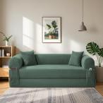 【並行輸入品】折りたたみ式コンバーチブルソファベッド 枕3点付き 79インチ コーデュロイ 骨なしソファ アームレストポケット付き ラウンジラブ