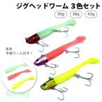 ジグヘッドワーム 3個セット 30g 38g 43g ジグヘッドリグ ソフトルアー ヒラメ マゴチ シーバス 青物 タチウオ
