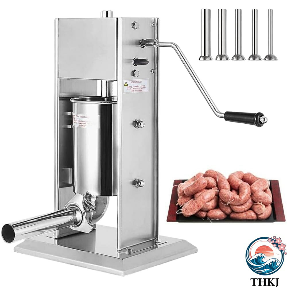 【全品2点で5%OFF】手動ソーセージ充填機、3L/5L/7Lソーセージスタッファーステンレス製ソーセージメーカー、5つのスタッフィングノズル付き、業務用および家庭用スタッファーメーカーマシン (3L)
