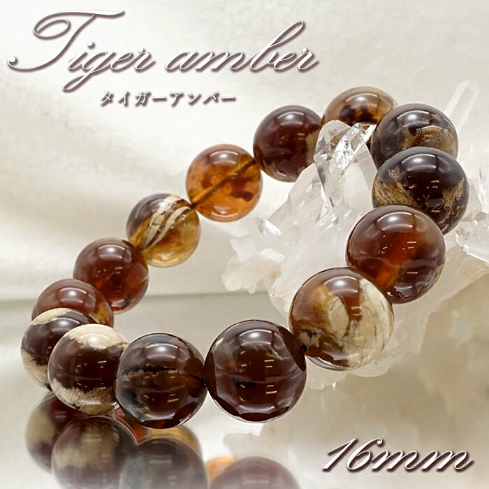 【楽天スーパーSALE 30%OFF】 【 一点もの 】 タイガーアンバー 16mm ブレスレット インドネシア産 スマトラ島 スマトラアンバー ブルーアンバー 琥珀 化石 天然石 パワーストーン カラーストーン Zm45w