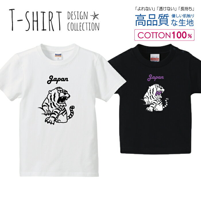 虎 タイガー JAPAN 日本 白黒 Tシャツ キッズ かわいい サイズ 100 110 120 130 140 150 半袖 綿 100% 透けない 長持ち プリントtシャツ コットン 5.6オンス ハイクオリティー 白Tシャツ 黒Tシャツ ホワイト ブラック