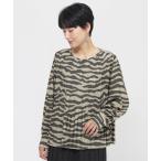 ブラウス シャツ 「L」「カタログ掲載」「ウォッシャブル」タイガープリントプリーツプルオーバーブラウス レディース