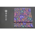 ふるさと納税 織物・繊維品 鹿児島県 いちき串木野市 黄金糸タイシルク入り帯地 本場大島紬 お洒落帯 ぼかし染の唐草模様 袋帯 名古屋帯 反物 紫グラデーショ…
