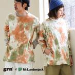 7分袖 tシャツ レディース メンズ 大きい タイダイTシャツ USAコットン 100% サイドシームポケット GRN×Mr.Lumberjack (メール便50)