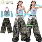 キッズ ダンス 衣装 ダンス ヒップホップ 女の子 ブルー タイダイ染め トップス カーゴパンツ スパンコール キャミソール ダンスウェア hiphop ジャズ K-POP 子