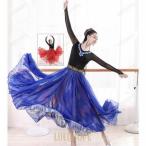レディース ダンス 衣装 広がるスカート ロング丈 大きい裾 シフォン2枚重ね ボリューム ロング スカート タイダイ染と無地シフォン組合せ スリット