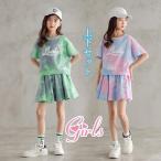ダンス衣装 チアガール チアダンス 子ども服 セットアップ ジム ジャージ スウェット スポーツウェア 子供 キッズ 夏tシャツ スカート キュロット ジム 女の子 半袖 上下セット 2点 タイダイ 運動会 ダンス スポーツ 中学生 カジュアル 韓国 HIPHOP 送料無料