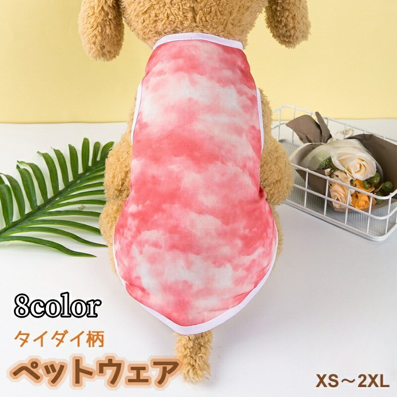 送料無料 ペット用タンクトップ 犬用タンクトップ 犬服 ドッグウェア ペットウェア 小型犬 中型犬 イヌ ネコ 猫 トップス ノースリーブ 袖なし 丸首 ラウンドネック プルオーバー 総柄 カラフル タイダイ柄 ポップ カジュアル かわいい キュート 夏
